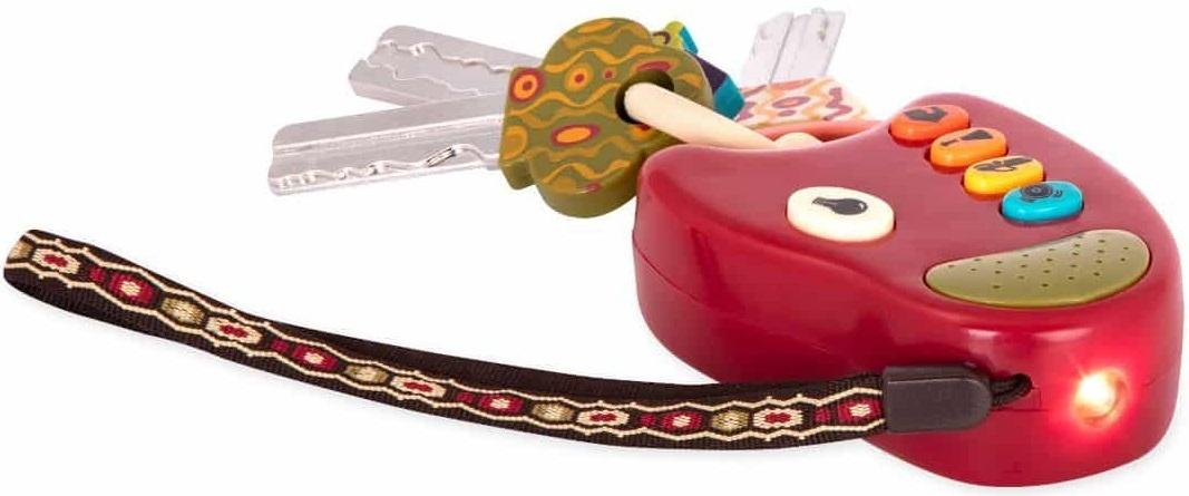Go anywhere, anytime in your make-believe car with LucKeys!This multicolored key ring includes 4 textured keys and a driver’s key that features a push-button flashlight and exciting sounds such as a horn and a car ignition! (But don’t sweat the sound – this baby toy is easy on grown-up ears.)Not only will this key ring make your little one’s imagination go round and round, but it can also improve their sensory development and fine motor skills. And because we at B. keep the environment in mind, parents will be happy to know that our packaging is recyclable.*Features:** Push-button flashlight* Go ahead, chew away it's safe stainless steel* Use your imagination for never-ending fun* Shipped in assorted colors and packed in reversible gift box ready for gift giving* Two AAA batteries included, colors may vary* Suitable for ages: 10+ Months