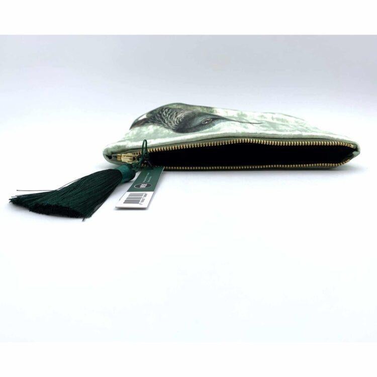 100% NZ: Hushed Green Tui Velvet Cosmetic Bag