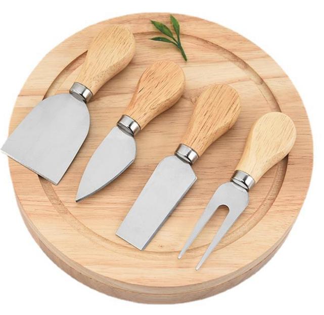 \*The mini knife case is made of oak wood. It can be used as a plate for charcuterie.\*\*The blade is made of 420 stainless steel, with high hardness, durable and not easy to rust. The handle and blade feature built-in technology for durability and easy cleaning. The surface of the blade is polished, the surface is smooth, and the blade is sharp, which can cut food easily.The set comes with different types of cheese knives that can be used to meet your different cheese cutting and serving needs.Rubber wood handle, the handle is made of rubber wood, with smooth lines and comfortable grip.*Features:** For bread, cheese, cheese, butter.* Cheese tools are lightweight and have sharp blades.* Not only can it be used as a display knife at parties, but it can also be a great gift for family and friends who love delicatessen.*Specifics:** *Colour* – Wood* *Material* – rubber wood, stainless steel* *Dimensions* – 3cm x 22cm* *Weight* – 882 grams* *Process* – polishing