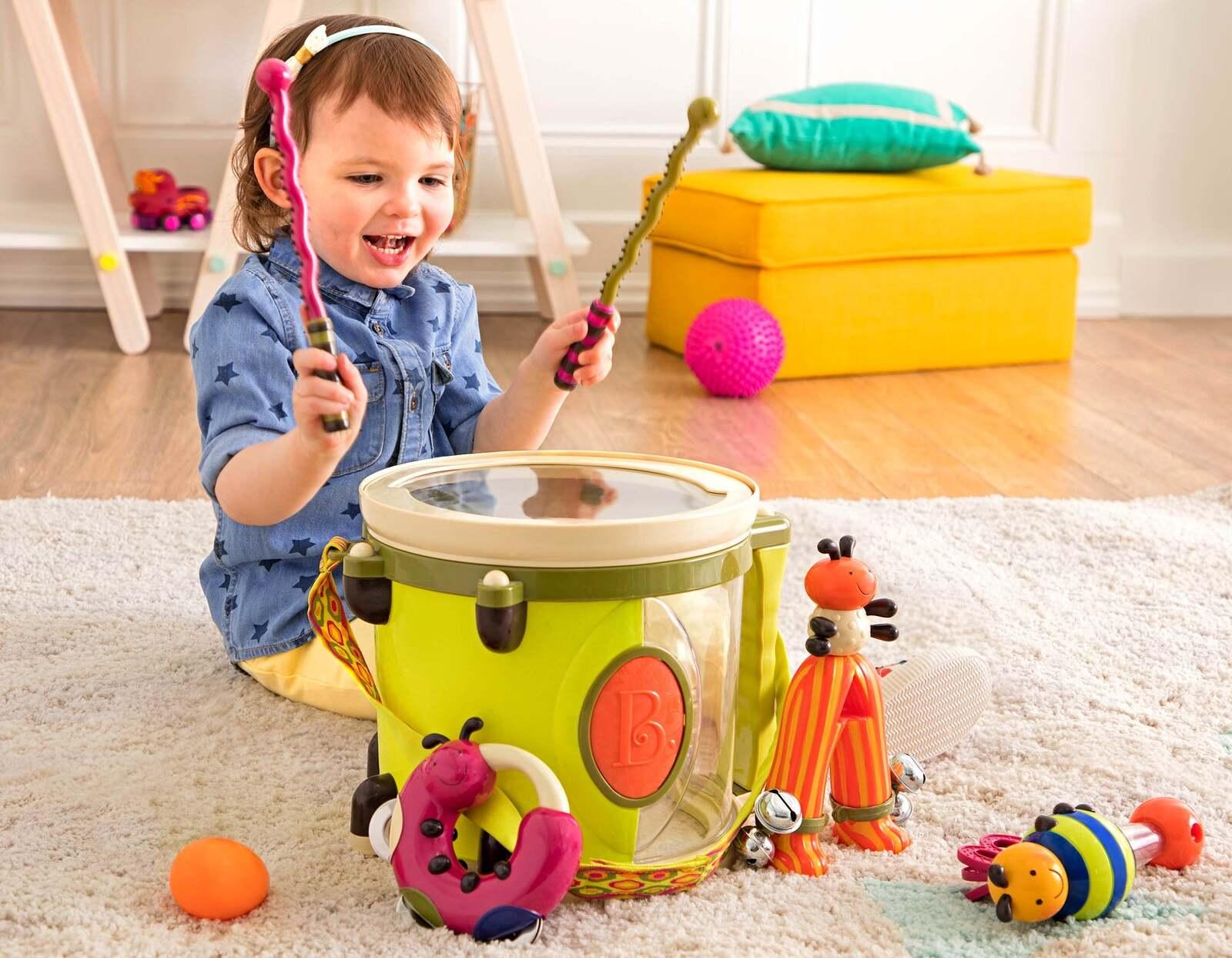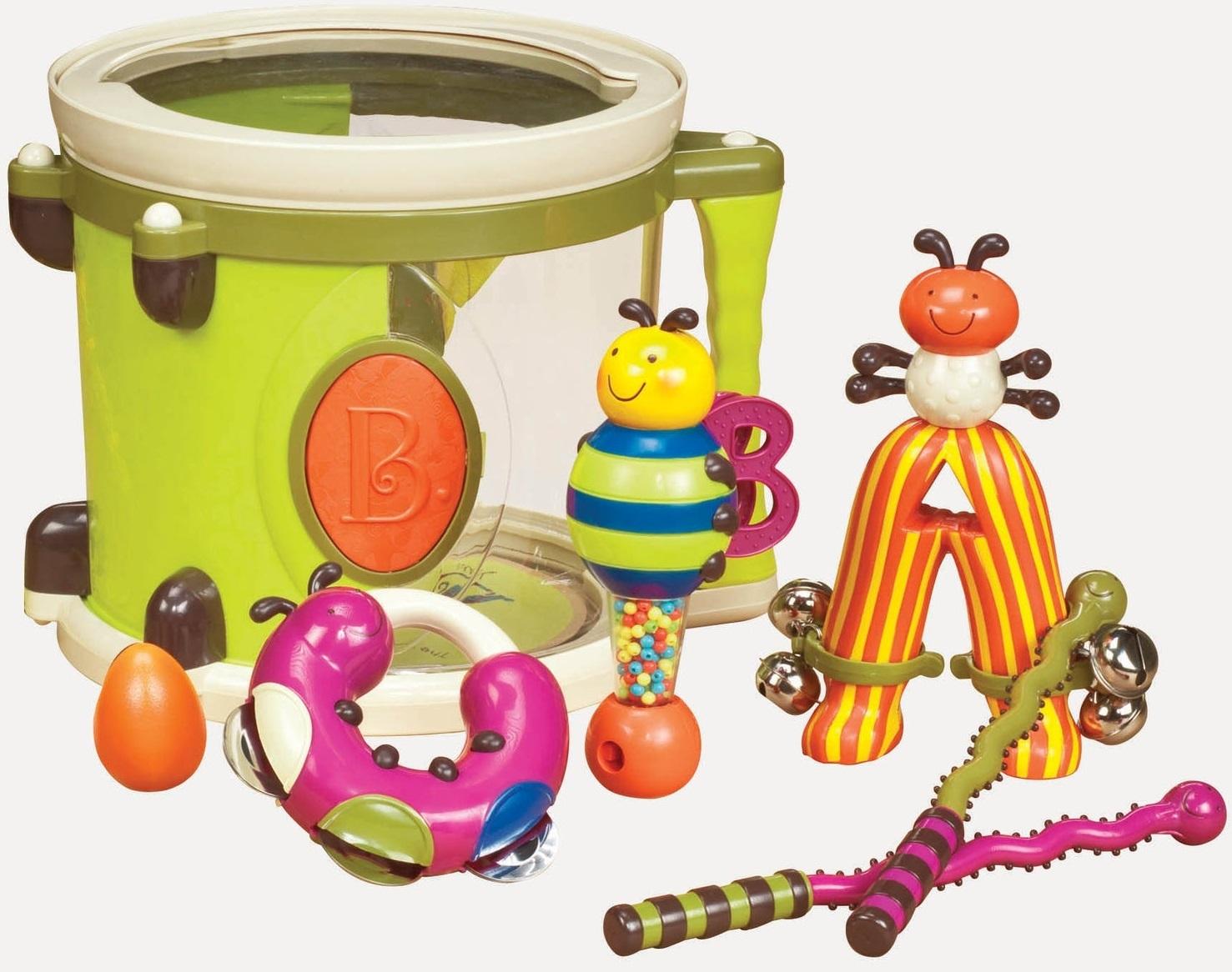 The Parum Pum Pum drum kit turns your child's musical talents into a critter celebration! This buggy instrument set includes an ant jingle bell, a caterpillar tambourine, a bumblebee maraca, and more – the whole percussion section in one place!So play your own rhythm and march your own route.*Features:** Silly centipede drumsticks, jingle bell ants, a busy bee maraca and clacker* Cute caterpillar tambourine and one shaka-shaka egg* Use your imagination for never-ending fun* Drum with big handle for little hands* Get the whole family together and make a band* Suitable for ages 18 Months to 3 Years.