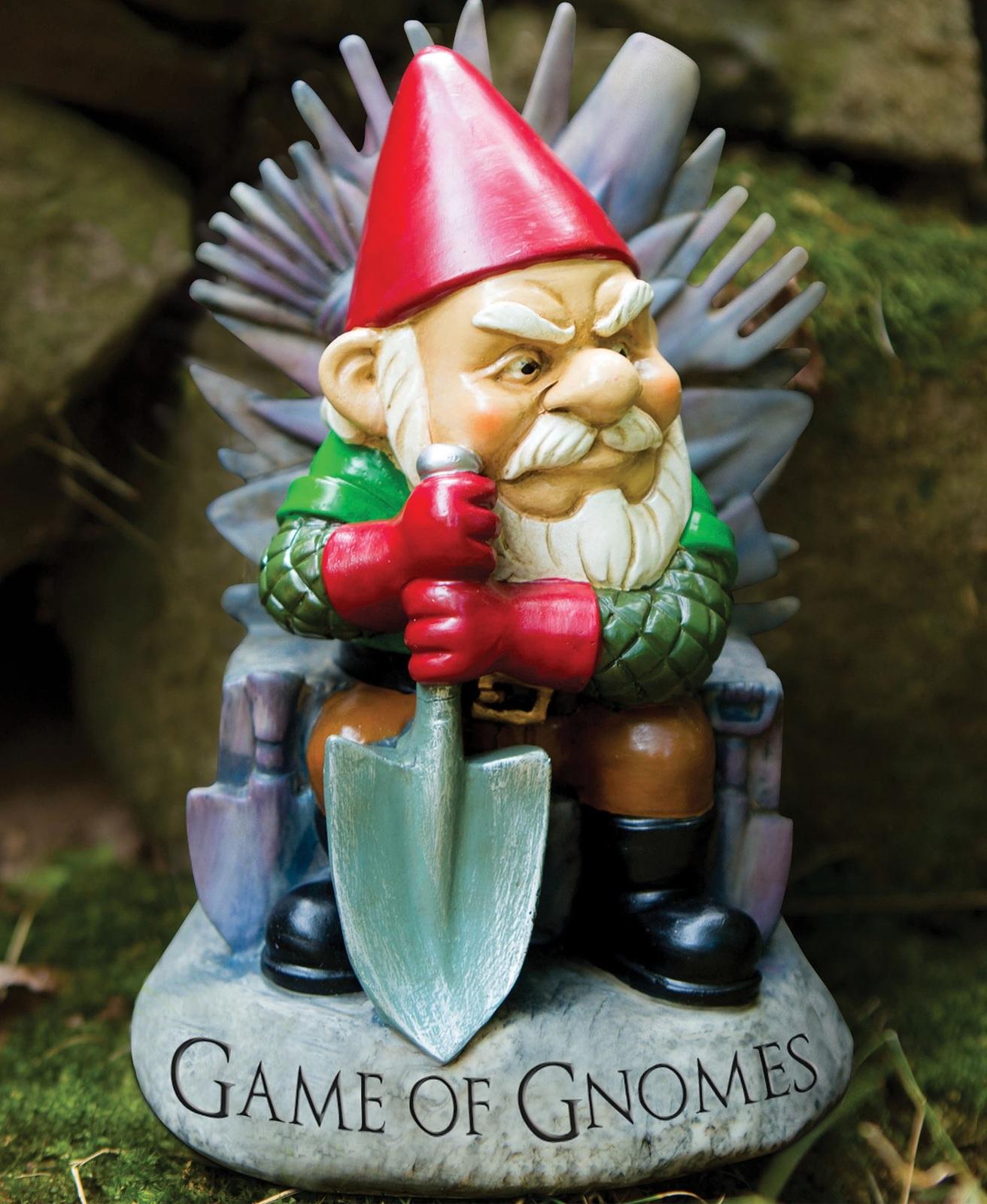 Game of gnomes garden gnome will protect the garden from the throne. Hand painted garden gnome is made of resin and weatherproof. Stands approximately 9 Inch tall.* Funny and great for front yards, gardens, offices or anywhere a gnome will lurk* Gnome has great features* Hand painted and weatherproof* Stands approximately 9.5 Inches tall_BigMouth Inc. is a ‘boutique’ designer and manufacturer of creative, humorous gifts based in Glastonbury, CT. Every item offered is exclusively designed, and manufactured by BigMouth Inc_