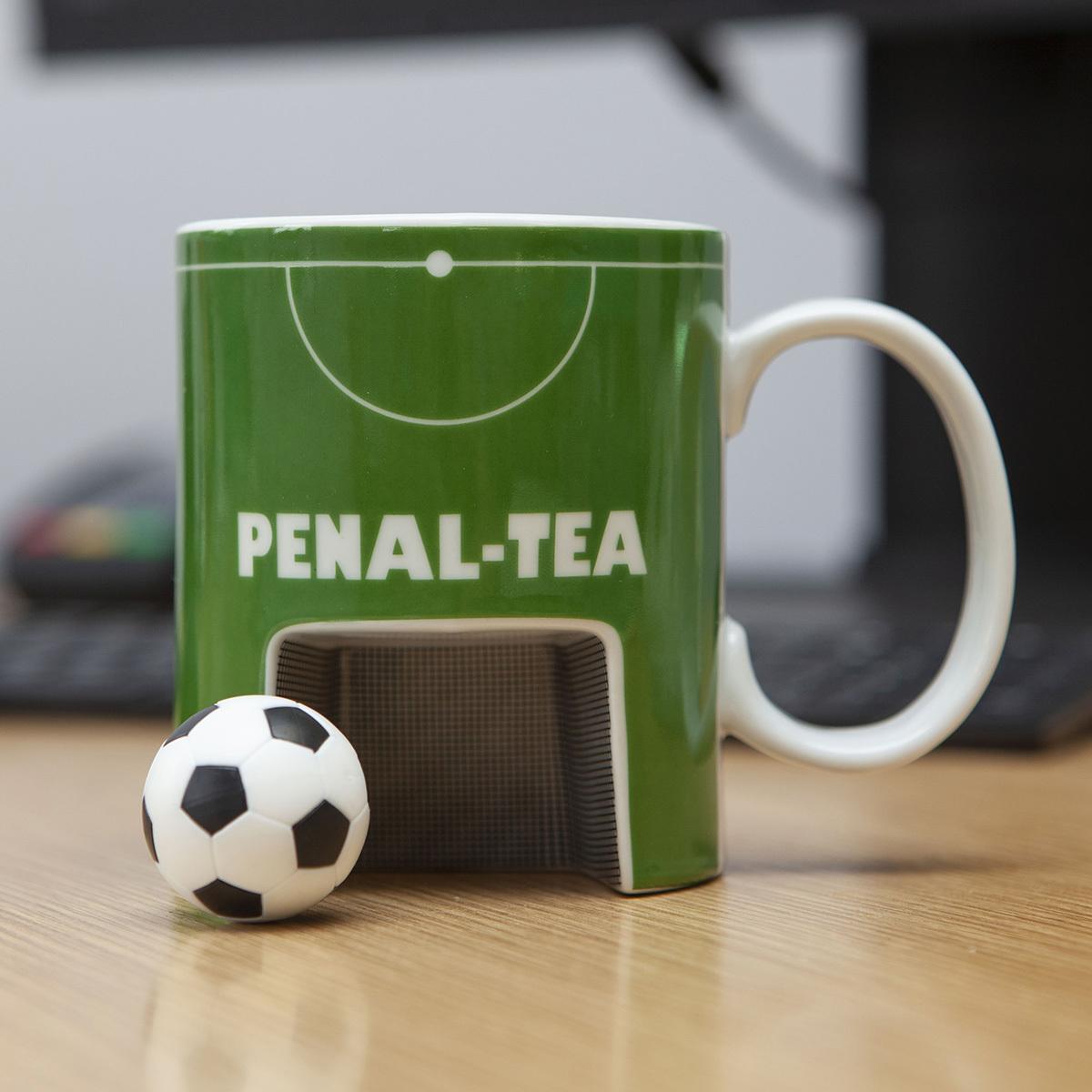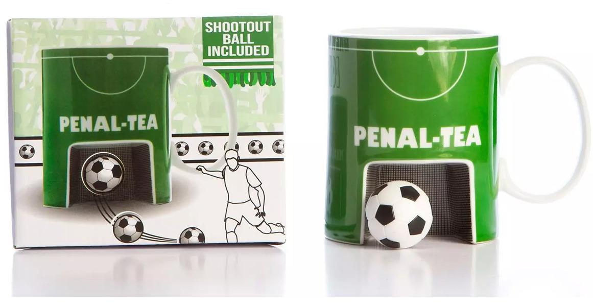 Kick start your day with a dribble of tea in this interactive, novelty footy mug! Perfect for a brew at half-time, this 10 oz-shaped mug, with hilarious text that reads “Penal-tea”, has a built in football net and includes a miniature football, so you can practice even when you’re off the pitch and in the office! Dishwasher and microwave safe, this unique and fun ceramic mug is a definite keeper! Complete with a decorative gift box, this stylish football themed mug makes the ultimate gift for a football lover on their Birthday, Father’s Day, or even as a Secret Santa at Christmas! (We’ll let you be the referee!)*Specifics:** *Brand* – Boxer Gifts* *Material* – Ceramic* *Size* – 300ml (10oz)