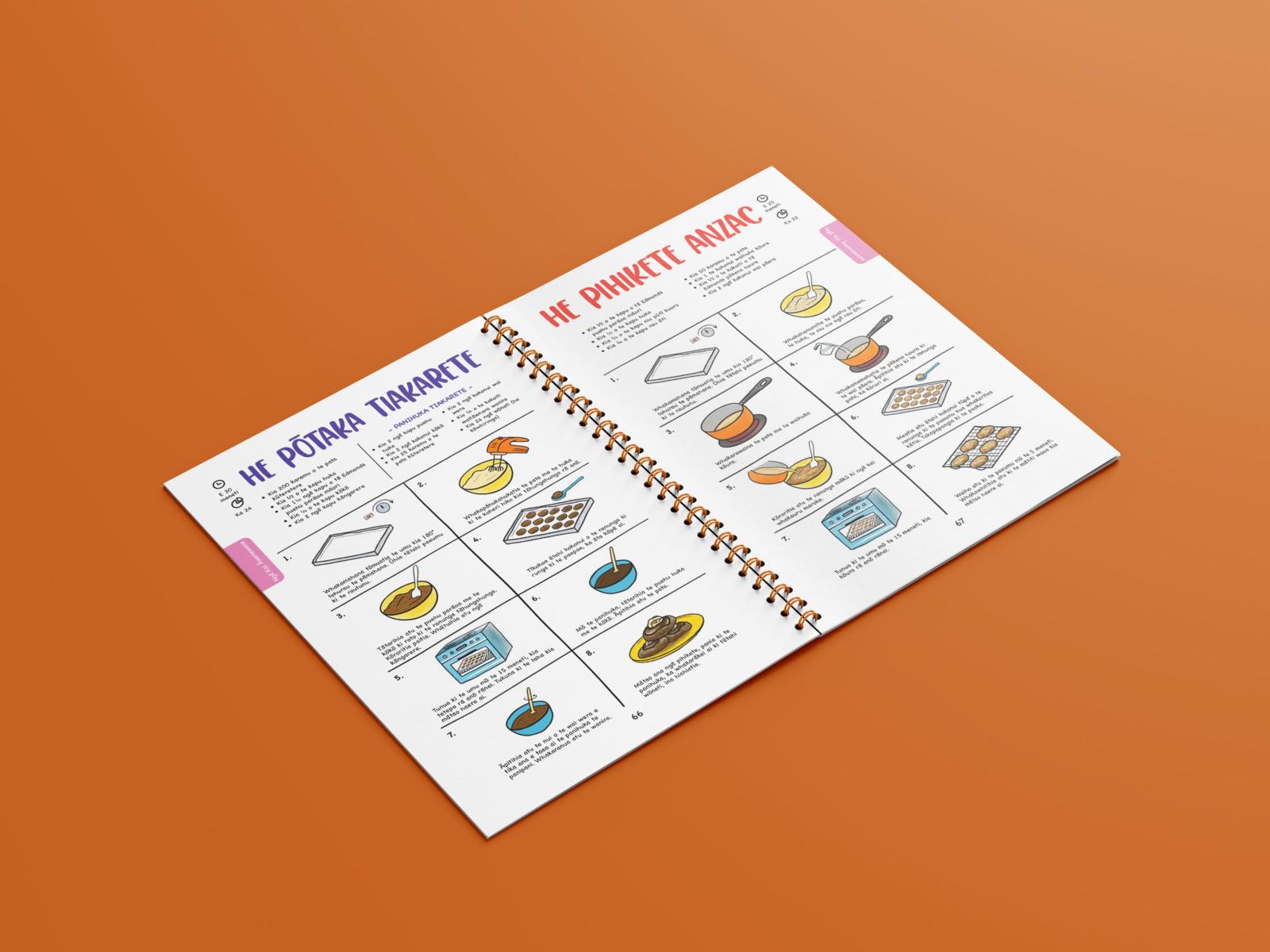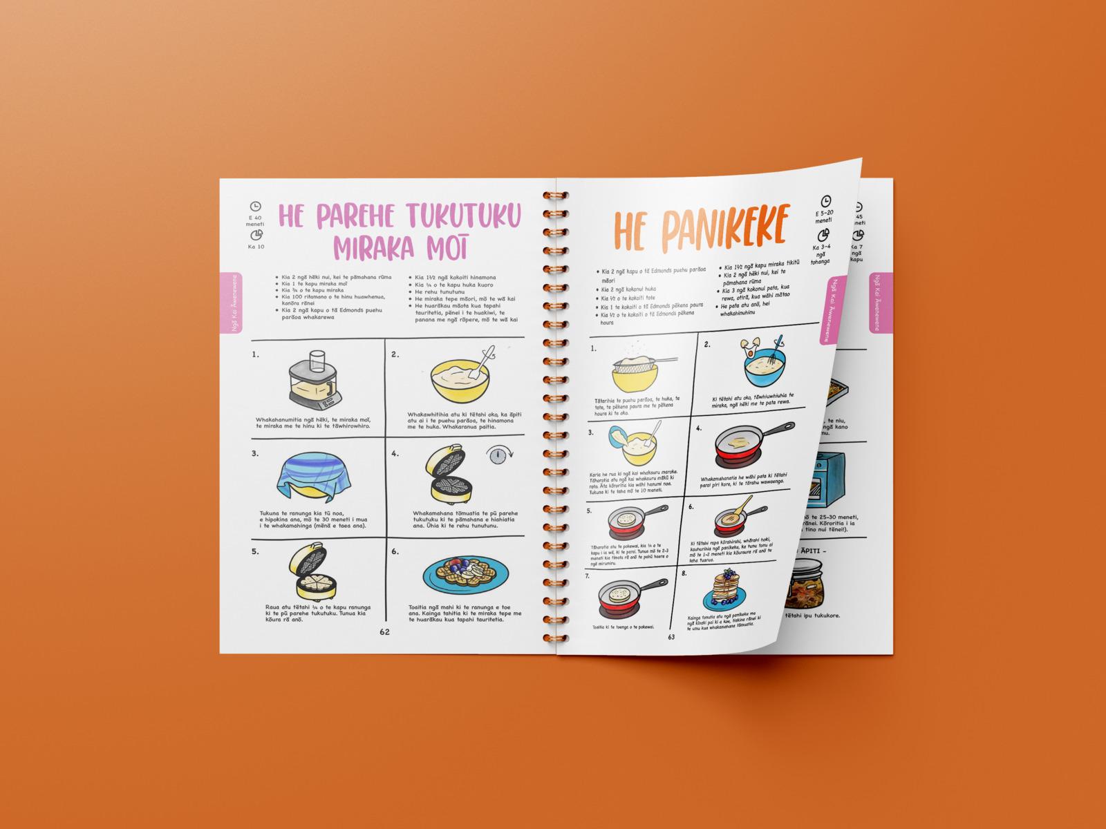 I te āhua o ngā pikitia, me te takoto o te hātepe tohutohu, ka māmā noa tō ako ki te tunu i ēnei kai e hāngai pū ana ki Aotearoa.Kia tū koe hei toa ki te tao panikeke, hei toki ki te tunu pōtaka tiakarete, hei rehe rānei ki te mahi pihapiha.Mai i te kai ata, ki te purini, tae ana ki ngā kai me ngā timotimo katoa i waenganui, ka noho ko tēnei kohinga, kei koni atu i te 90 ōna tohutao, hei kaiwhakatō i te ngākaunui mauroa o te tangata ki te tunu me te tao kai.Tirohia ngā tohutao hou me te rārangi kupu e reorua ana.With an illustrated, step-by-step layout, you'll find it super easy to learn to cook these classic New Zealand recipes.Become a champion-pikelet-maker, an expert-afghan-baker or an award-winning-pizza-creator.From breakfast through to dessert and all the meals and snacks in between, this collection of over 90 recipes will be the beginning of a life-long love of baking and cooking.Check out the new recipes and bilingual glossary.