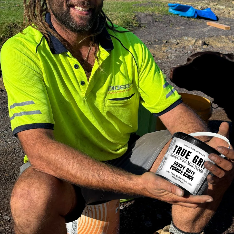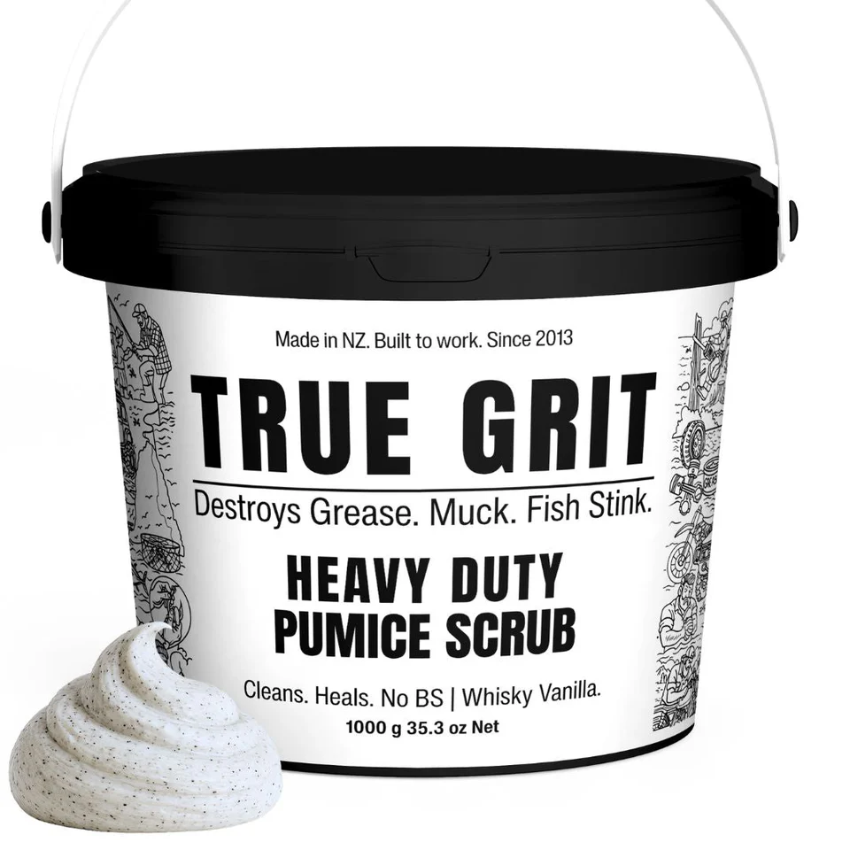 **Built for blokes. Tough on grime. Gentle on skin.****This isn’t your average scrub.**TRUE GRIT was once known as Mechanics Scrub- loved by tradies, mechanics, hunters, and fishermen across New Zealand. We tried renaming it “Good Bugger.” The product was still a beast, but the name didn’t hit hard enough. So we gave it a proper badge: TRUE GRIT.**Same legendary formula. Upgraded with even better ingredients.**More butters. More grit. Still smells like whisky caramel and hard-won respect.Whether you’re elbow-deep in engine grease, hauling snapper off the boat, or digging post holes in the paddock-TRUE GRIT brings your hands back to life.SUITABLE FOR:* Mechanics* Fishos* Tradies* Farmers* Gardeners* Anyone who works hard and scrubs harder