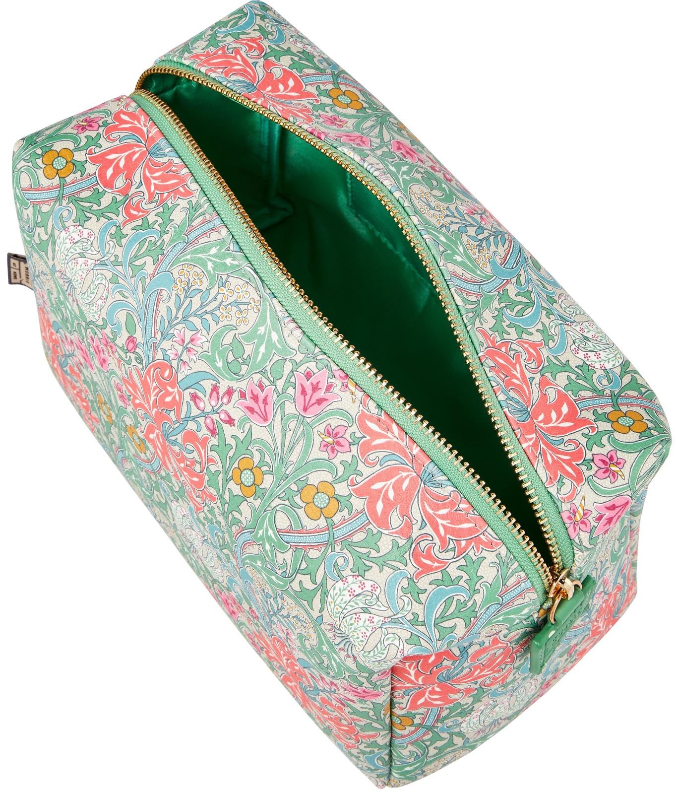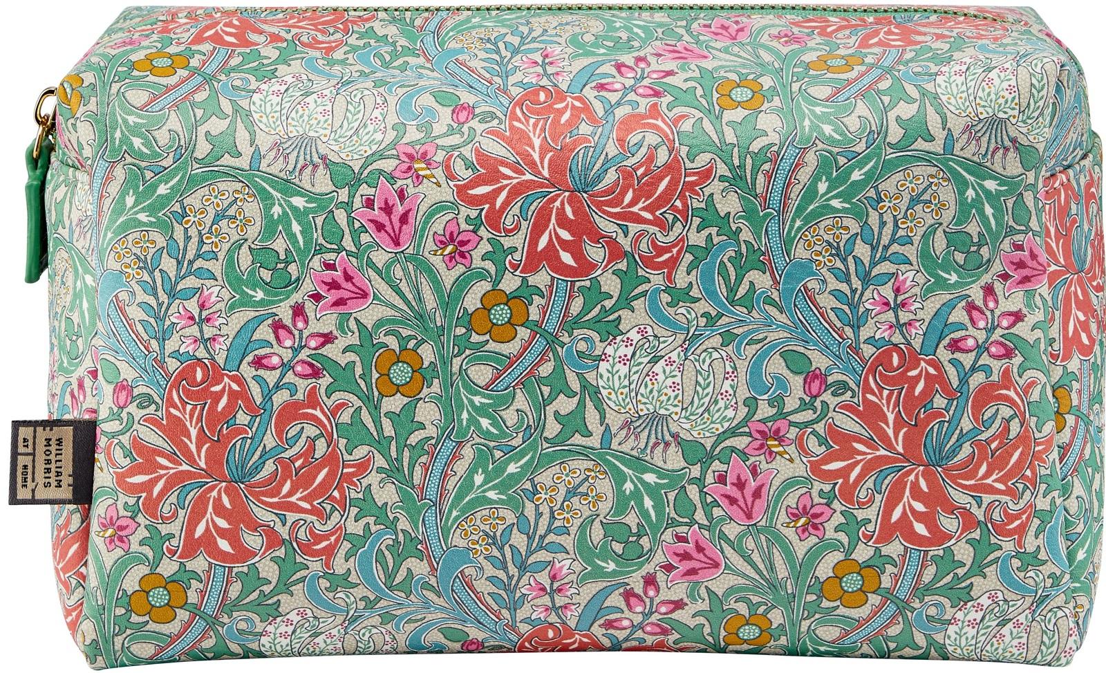 *_Heathcote & Ivory: Golden Lily – Wash Bag_*Upgrade your beauty storage with our William Morris print large wash bag, featuring the iconic Golden Lily design recoloured with a fresh, modern palette. Generously sized with plenty of room for your toiletries.