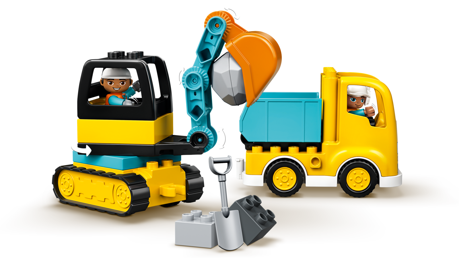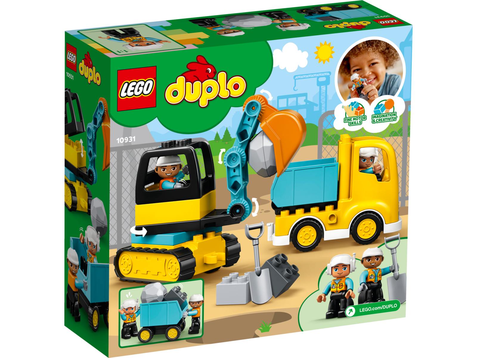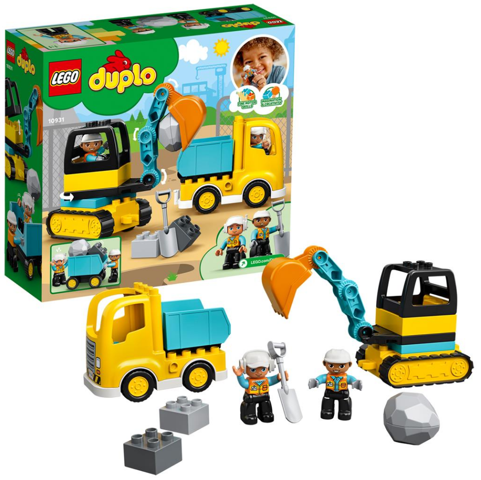 *LEGO DUPLO Truck & Tracked Excavator encourages little builders to explore endless open-ended play*As they act out imaginative construction-site scenes with the toy truck, digger and 2 construction workers, toddlers develop valuable physical and cognitive skills that last a lifetime. Construction-site toy with vehicles and workers With 2 construction-worker figures, a truck with a tip function and an excavator with a rotating digger, toddlers and parents have all they need to get the job done. Kids develop their fine motor skills as they maneuver and operate the vehicles to carry out various construction-site tasks. There are toy boulders to scoop up into the truck. But watch out, the boulder can easily split open! What’s the best building toy for young kids and toddlers? The range of LEGO DUPLO Construction playsets has been designed to provide preschoolers with toys that stimulate and satisfy their growing needs. Sets can be combined to increase the play benefits.*Features:** As toddlers role-play imaginative building-site stories* They also build developmental skills that last a lifetime!* Includes 2 contemporary construction-worker figures, truck with a tip function* A push-along excavator with a rotating digger, and a toy boulder* Parents and caregivers share imaginative role-play with their little builder* If you want to give a toddler the best toy for their growing needs* Makes a great kids’ gift for young vehicle-lovers and fans of construction sites*Specifics:**Item:* 10931*Pieces:* 20*Ages:* 2+