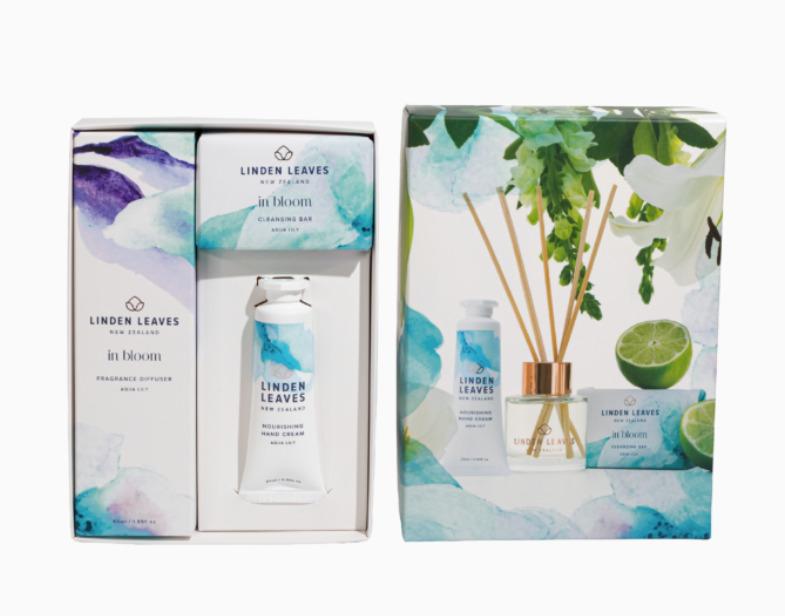 Nourish your body and soul with this gorgeous Aqua Lily gift set. Let the midi fragrance diffuser fill your space with fresh top notes of citrus and pear, layered over a bouquet of marine, green florals and lily – a stylish and long-lasting way to fragrance your home. And for the hands, a mini hand cream and cleansing bar that will leave your skin feeling nourished and soft thanks to the natural beauty of shea butter.*_Key features & benefits_*Consistent release of scent in a recyclable glass diffuser jarDeeply nourishing, fast absorbing hand creamNatural, palm oil-free, gentle & low-irritant cleansing barShea butter helps soften skin plus anti-inflammatory and healing properties to soothe skinVegan friendly and made in New Zealand*_Contains_*Cleansing Bar 100gMidi Fragrance Diffuser 50mlMini Hand Cream 25ml*_Volume_*50ml, 100g, 25ml*_Ingredients_*Cleansing Bar: Ingredients INCI: sodium olivate, sodium cocoate, sodium stearate, aqua (water), parfum (fragrance), citrus limon (lemon) peel oil, citrus aurantium bergamia (bergamot) peel oil, citrus nobilis (mandarin) peel oil, citrus reticulata (tangerine) peel oil, hydroxycitrone­llal\*, buylphenyl methylpropional\*, linalool\*, citronellol\*, limonene\*, glycerin (vegetable), sodium chloride, butyrospermum parkii (shea) butter, vitis vinifera (grape) seed oil, tetrasodium glutamate diacetate _fragrance component Midi Diffuser: ethoxydiglycol, parfum (fragrance), citrus limon (lemon) peel oil, citrus aurantium bergamia (bergamot) peel oil, citrus nobilis (mandarin) peel oil, citrus reticulata (tangerine) peel oil, hydroxycitrone­llal_, geraniol\*, linalool\*, citronellol\*, limonene\*, alcohol denat. _fragrance component Hand Cream: aqua (water), aloe barbadensis (aloe vera) leaf extract, glyceryl stearate SE, cetearyl alcohol, glycerin (vegetable), isopropyl myristate, parfum (fragrance), citrus limon (lemon) peel oil, citrus aurantium bergamia (bergamot) peel oil, citrus nobilis (mandarin) peel oil, citrus reticulata (tangerine) peel oil, citral_, hydroxycitrone­llal\*, geraniol\*, butylphenyl methylpropional\*, linalool\*, citronellol\*, limonene\*, sodium stearoyl glutamate, benzyl alcohol, prunus amygdalus dulcis (sweet almond) oil, theobroma cacao (cocoa) seed butter, butyrospermum parkii (shea) butter, sesamum indicum (sesame) seed oil, tocopheryl acetate (vitamin E), oenothera biennis (evening primrose) oil, salvia officinalis (sage) leaf extract, salicylic acid, rosmarinus officinalis (rosemary) leaf extract, sorbic acid \*fragrance component