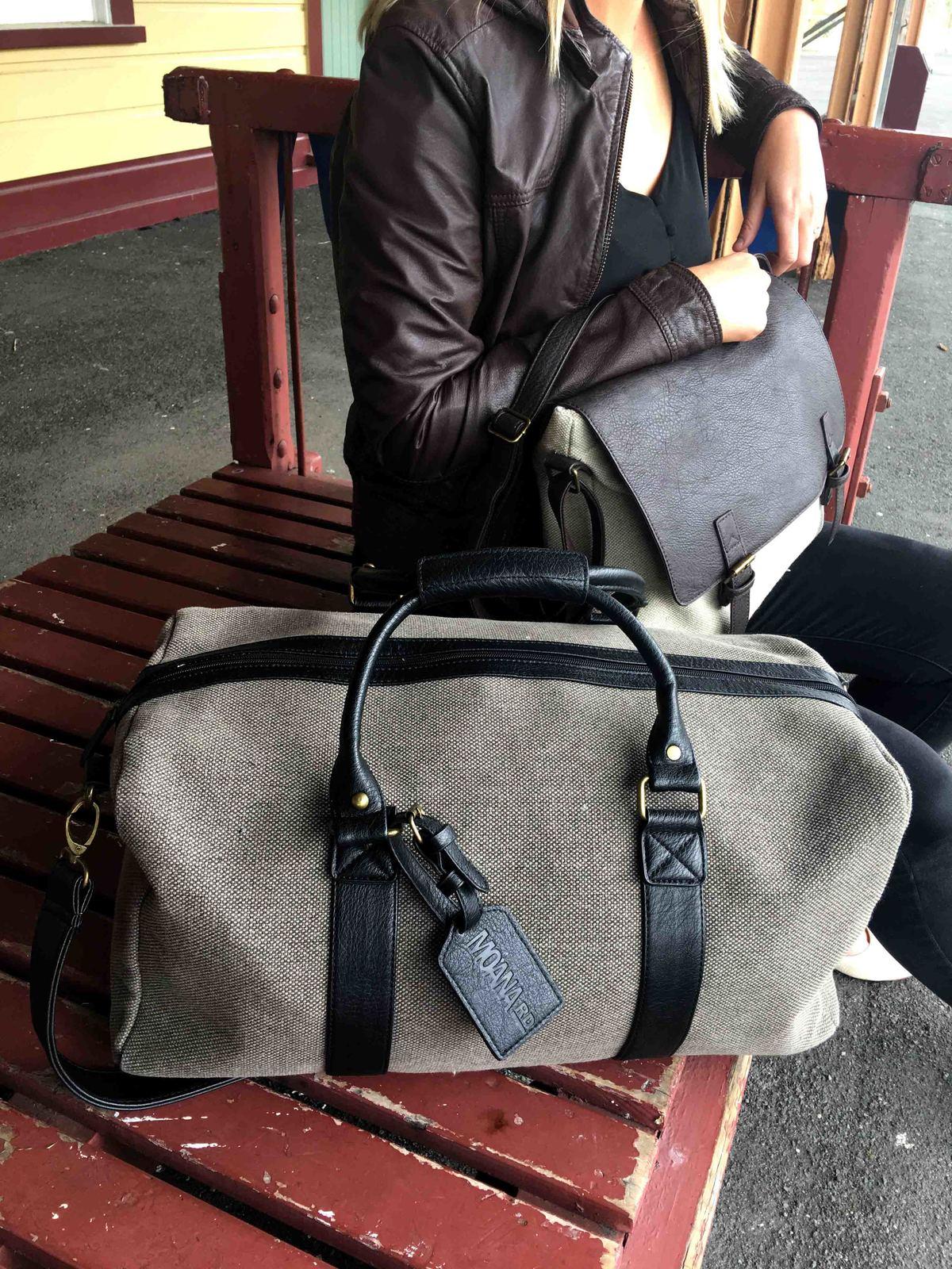 *_Moana Road: Paihia Overnighter_*Dark grey canvas with black PU trim overnight bag.* Comes with a long strap.* 60cm x 24cm 30cm*_About Moana Road:_*Moana Rd is a New Zealand brand that embodies the quintessential kiwi life, with an eclectic mix of quirky Kiwiana homewares, funky fashion accessories and choice-as technology products.​We celebrate a time when baches were simple boxes surrounded by huge lawns for back yard cricket, jandals stuck to melting asphalt roads, kids rode their bikes everywhere and hokey pokey ice-creams were part of a healthy summer diet.
