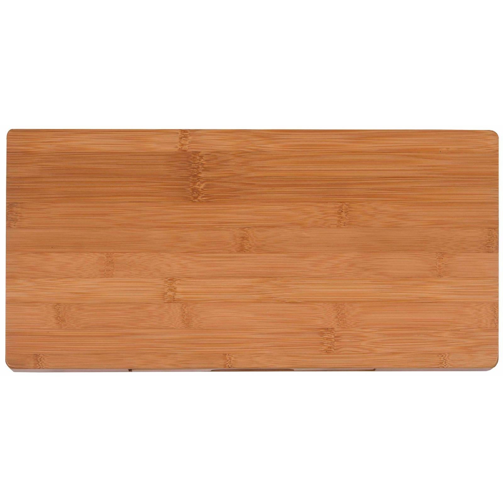 *Brand Decoration:* This product can be branded with your company logo or message. Due to ongoing advancements in branding technologies, we have given an example of the “preferred” decoration area/s. (Use for guideline only). Other branding sizes and positions may be available and should be discussed with us or your preferred branding company.*Decoration Area:* Board: 60mm W x 40mm H Pad/Laser, Knives/Fork: 25mm W x 5mm H Pad/Laser*Features:** Retractable drawer containing 3× cheese knives and 1× cheese fork* Large surface area with integrated carry handles* Each board displays its own character through its unique wood grain finish* Supplied: in a black two part po ‘di fame presentation box (42.5cm W x 4cm H x 22.5cm D)*Specifics:** *Brand* – Po di Fame* *Material* * Rectangle bamboo cheese board * Stainless steel / bamboo utensils* *Dimensions* – Board: 40cm W x 3cm H x 20cm D* *Colour* – Bamboo