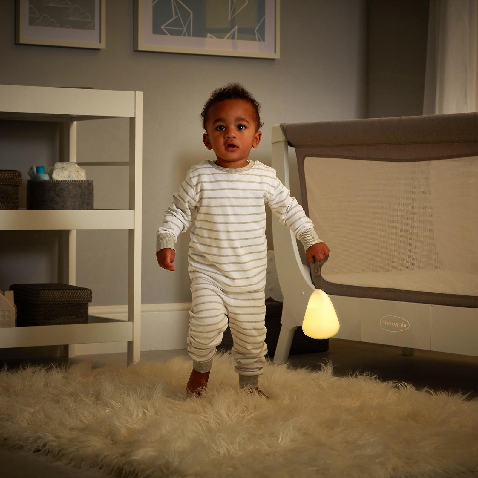 *Shnuggle – Newborn Feeding Light*The baby-safe, soft glow and low blue light levels make Moonlight the ideal light for feeding, comforting and changing baby; creating a calming environment which reduces stimulation and helps to promote sleep for baby. Simply switch to Child Mode and Moonlight becomes the perfect night time companion for your child. A soothing bedside light to help promote sleep and a comforting light during your little one's late night bathroom trips.Light up every step with Shnuggle Moonlight, the sleep friendly portable nightlight. With dual parent and child modes, a room temperature sensing dock and unique design, Moonlight is a must have for all new parents.*Features:** Dual Parent and Child modes provides a comforting light.* Great for those newborn night feeds to a soothing bedside light for your child.* Clever temperature sensing dock to help ensure the ideal room temperature.* Sleep friendly soft glow, with low blue light levels to help promote a more restful sleep.* Portable and lightweight with a handy strap to easily carry around the home.