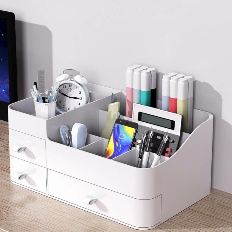 *STORFEX Multifunctional Makeup Organizer – White*This elegant and practical organizer is thoughtfully designed to keep your cosmetics, office supplies, or kitchen essentials neatly organized, making it a beautiful and versatile addition to your home.*Multi-Compartment Design:*This vanity organizer boasts a large drawer, two small drawers, and multiple slot compartments on top. The drawers glide open smoothly, and the top slots are perfect for storing lotions, perfume bottles, brushes, lipsticks, nail polishes, and more.*Safe Materials:*This organizer is crafted from safe material, non-toxic, and odourless. You can confidently store delicate cosmetics without worrying about their effectiveness or scent. Cleaning is a breeze, too—simply wipe it with a damp cloth or rinse it with water for easy maintenance.*Versatile Use:*Beyond cosmetics, this organizer serves various storage needs. It's suitable for office supplies like pens, post-it notes, and business cards, or it can organize spices, condiments, grains, and kitchen supplies. With its thoughtful design, it's perfect for any space that requires organization.*Large Capacity:*The multifunctional makeup organizer's large size allows you to neatly store different-sized skincare and cosmetic products, keeping them easily accessible. It offers efficient and clutter-free storage, no matter your needs.*_Note: Due to the thinness of the material the product may show a shade of purple under strong lights_**Technical Specifications*Colour: WhiteMaterial: ABS, PPSize: 33.5 × 21.3 × 15 cmWeight: 1.14kgPackage Inclusion:1 x STORFEX Multifunctional Makeup Organizer