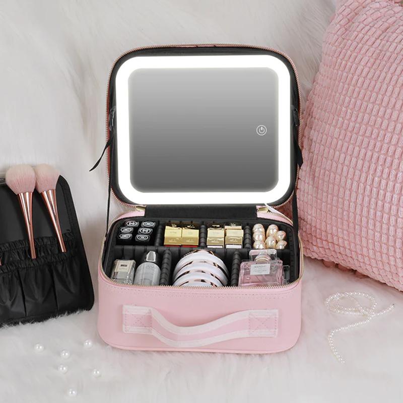 STORFEX Travel Makeup Bag with Light Up Mirror - Pink