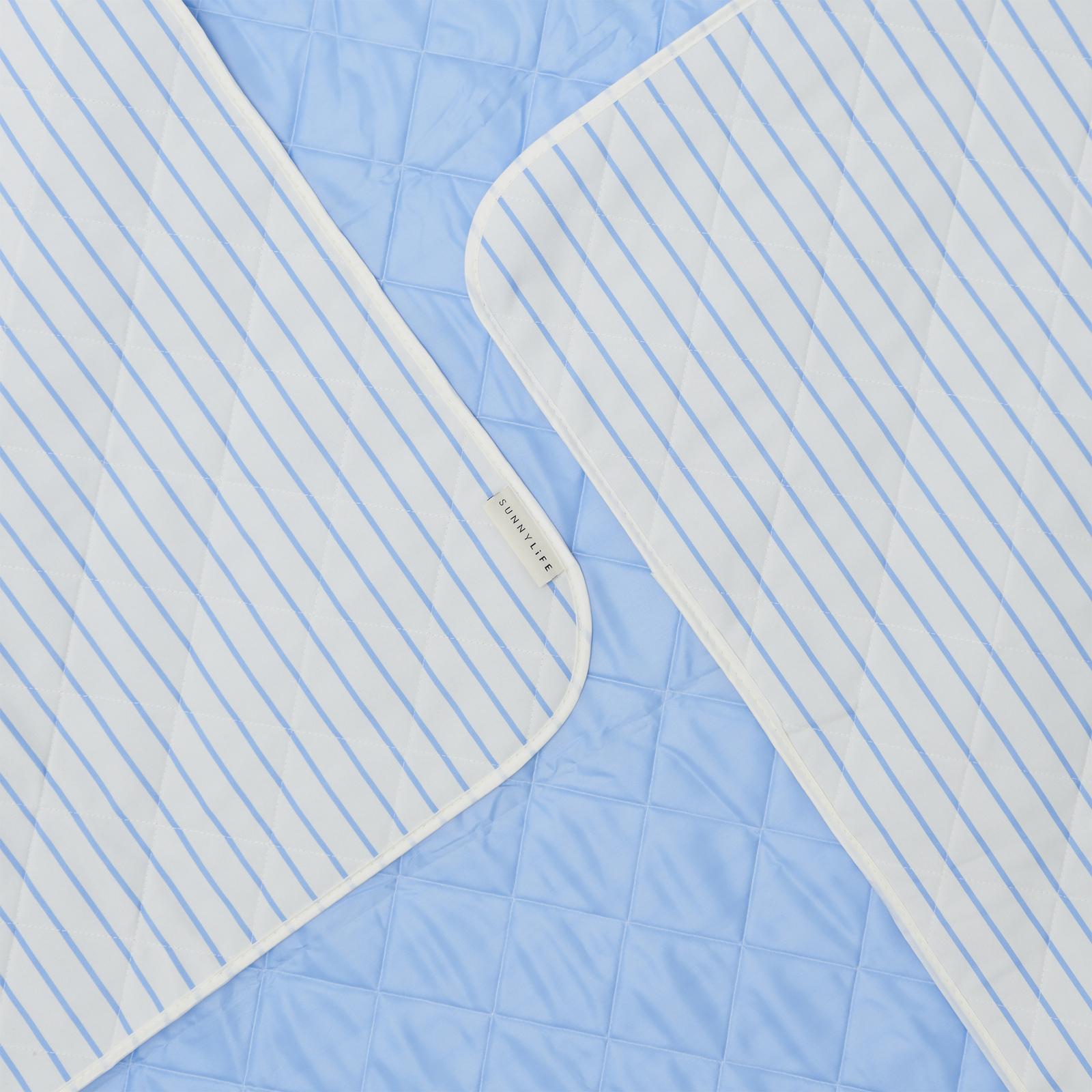 *_Sunnylife: Beach and Picnic Blanket – Le Weekend Mid Blue-Cream_*Sit with us and our premium picnic range. The Le Weekend Beach And Picnic Blanket is designed to easily roll out and provide a space to relax and unwind by the seaside. Our picnic blanket has an updated surface stitching design and a new drawstring modern carry bag with carry strap. From sandy beach trips to keeping comfortable on grass, carry it with you wherever you go and simply wipe clean or machine wash and roll up once the day is done. Take pleasure in soaking up the seascape in style with its classic blue and creamy white pinstripe print that will have you feeling breezy from sunrise to sunset.*Features:** 100% polyester.* Drawstring bag for easy carry.* Water resistant surface and backing fabric.* Comfortable foam inner layer.* Wipe clean or gentle machine wash.* Line dry in the shade.