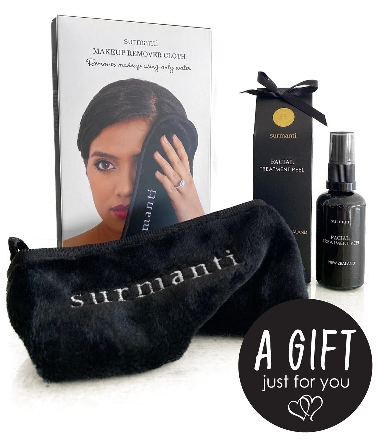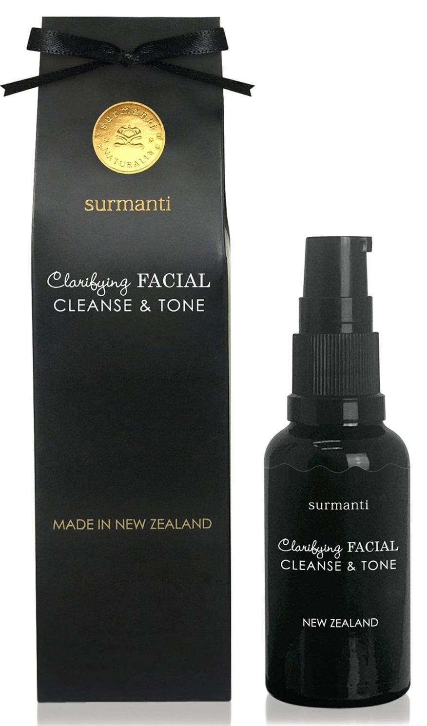 *_Surmanti: Clarifying Facial Essentials Set (5 Piece Gift Set)_*The key to preserving your age at every stage starts with a complete skincare routine. After all, the decision to age fast or age slow is in your hands! Our Surmanti Clarifying Facial Essentials Set is packed with ALL the products you need in order to start a complete skincare routine. Each item is carefully selected to provide nutrients minerals and vitamins your skin needs every day to prevent aging, by boosting collagen and hydrating young skin.*Facial Clarifying Essentials Skincare Set Contains:** *Facial Clarifying Serum Oil 18ml* – Silky smooth and lightweight, facial serum oil is a concentrate of active ingredients that deeply penetrate skin cell layers to target dehydration dryness inflammation dark circles, and fine lines.* *Facial Clarifying Daily Moisturiser 50ml* – Featherlight, gentle and refreshing – This ultra-hydrating formula balances, soothes, conditions, and strengthens the skin's natural moisture barrier.* *Facial Clarifying Cleanse & Tone 50ml* – A foaming antibacterial cleanser that promotes the overall health of the skin by boosting elasticity, hydration, and healing of inflammation, as well as fighting acne-causing bacteria.* *Facial Clarifying Toner Spritz 50ml* – The ultimate hydrator. Rejuvenate, energise and soothe your skin with the healing hydrosols of bergamot, cucumber seed, and soothing chamomile.* \*\* Clarifying Facial Treatment Peel 45gm\*\* – One of our bestselling at-home treatment peels that work within minutes to improve the texture and quality of your skin.* *Surmanti Makeup Remover Cloth* – A makeup remover cloth that is gentle, effective, and kind to the environment.*Made in New Zealand.*