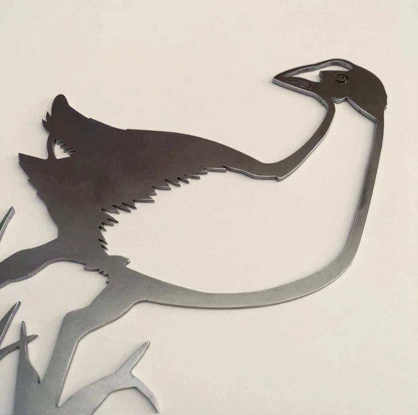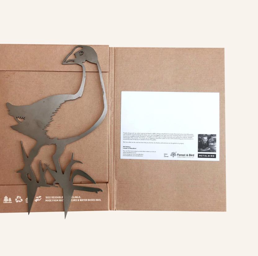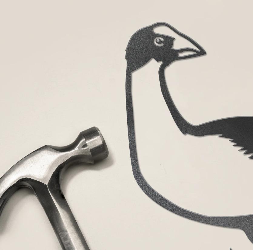 With its purpleish blue body and fab orange legs, the pūkeko has become a kiwiana icon, even though it’s actually an import, dropping in from Australia about a thousand years ago. If you’ve seen pūkeko fly across a small ditch you’ll wonder how on earth they made it over the big one. Awkward in the air but elegant on the feet, pūkeko are at their best wading, running and having a laugh in big social groups. Similar to the endangered takahē, pūkeko is the swamphen that got a zillion times luckier. Cool up your garden with this sensational bird.* 30cm high by 19cm wide (includes measurement of the branch/spike)* Easily installed with the tap of a hammer (pre-drill hard wood)* Crafted in 3mm Corten® ‘weathering’ Steel to form a beautiful patina that changes with the seasons* The perfect gift for a kiwiana-lover