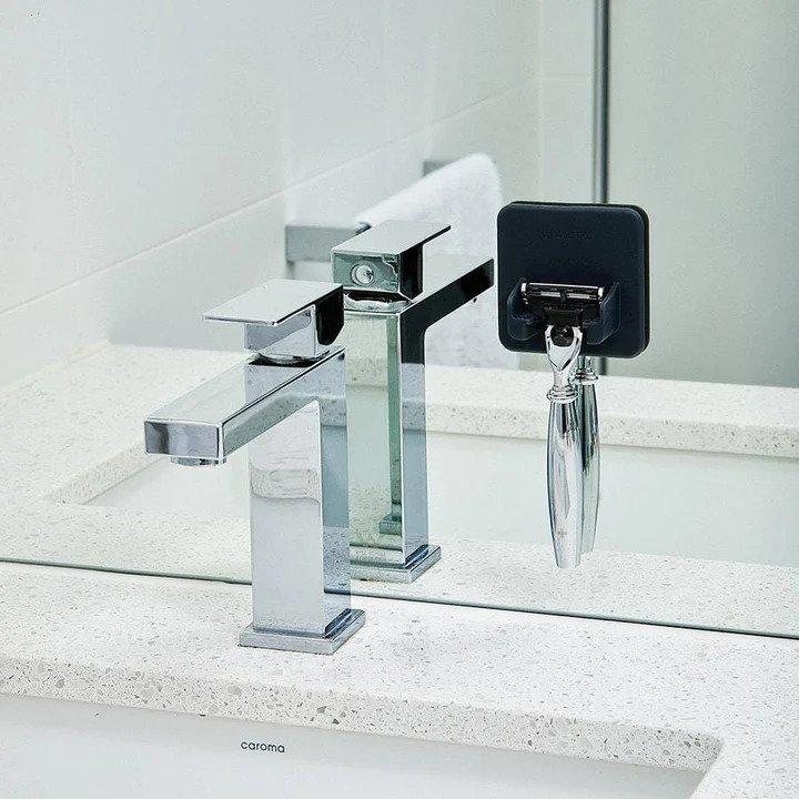 Its unique silicone technology allows it to grip to shiny surfaces and never lose its grip.Designed to fit all razor types. Perfect for the Shower and Bathroom and super hygienic for your razor! No suction cups. No adhesives. Leaves no Residue. Measures 5.5in x 2.4in.